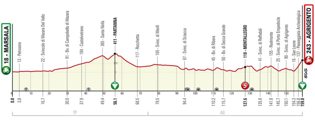 Le Tour de Sicile 2023 (2.1) entrera dans le vif du sujet dès la 1e étape le mardi 11 avril. S’il n’y a pas de grands cols à franchir entre Marsala et Agrigento (159 kilomètres), l’arrivée promet d’être difficile. C’est une pente de 3,5 kilomètres à 5,8% qui clôturera cette première journée de course en Italie. Les favoris du classement général dont le vainqueur sortant Damiano Caruso devront répondre présents d’entrée.