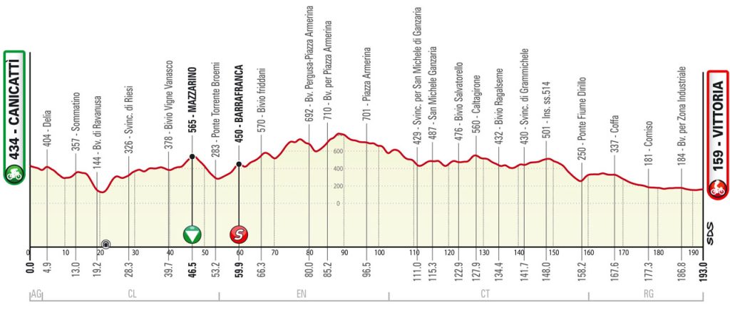 Mercredi 12 avril – Etape 2 : CANICATTÌ > VITTORIA (193 km)