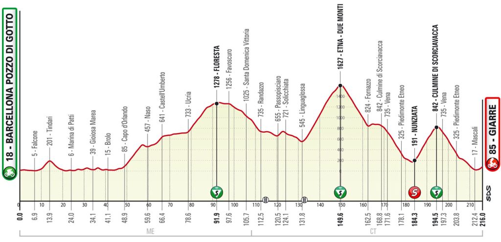 Si la deuxième étape semble promise aux sprinteurs, la troisième étape pourrait également leur sourire. Mais surtout ceux ayant quelques capacités dans les courtes bosses puisque le dernier kilomètre affiche 5% de pente moyenne. A l’occasion de la 4e étape, la dernière, le vendredi 14 avril, c’est une véritable étape de montagne qui attend le peloton. L’Etna (17,6 km à 6,1%) sera gravi en milieu d’étape. Il faudra enchainer avec le Culmine di Scorciavacca (10,2 km à 6,4%) avant de plonger vers l’arrivée à Giarre où le vainqueur final sera sacré après 216 kilomètres de course.