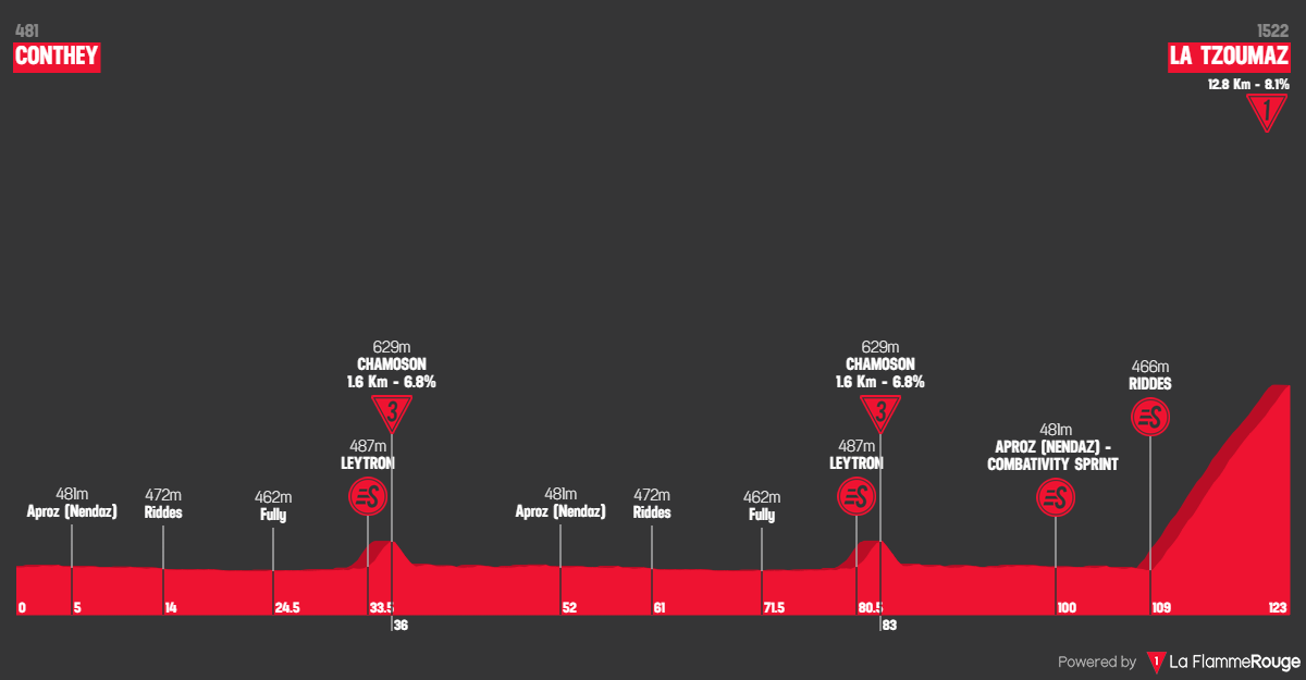 Samedi 16 août 2025 – Etape 1 – Conthey > La Tzoumaz (123.2 km)