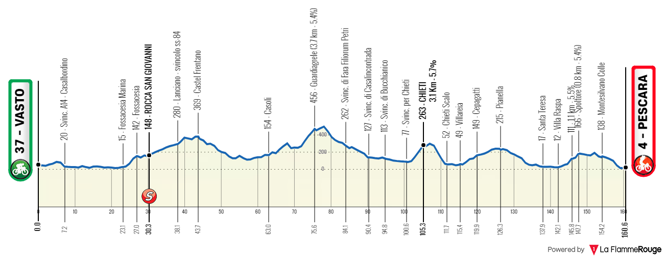 Etape 1 – Mardi 9 avril : VASTO > PESCARA (161 km)