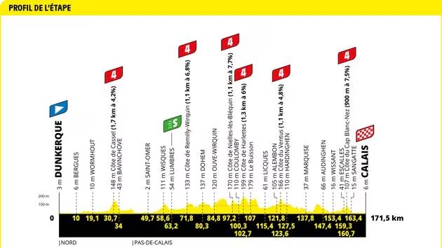 Une démonstration de force signée Wout van Aert. Le mardi 5 juillet 2022, le Belge s’impose lors de la 4e étape du Tour de France entre Dunkerque et Calais. Un parcours de 171,5 kilomètres, plutôt vallonné, avec la plupart des ascensions situées loin de l’arrivée, comme le Mont Cassel franchi après seulement 30 kilomètres. Sur le papier, l’étape semble destinée aux sprinteurs, mais la présence d’un dernier sommet à 11 kilomètres de l’arrivée laisse entrevoir une opportunité pour les puncheurs. Et c’est précisément ce scénario qui va se produire.